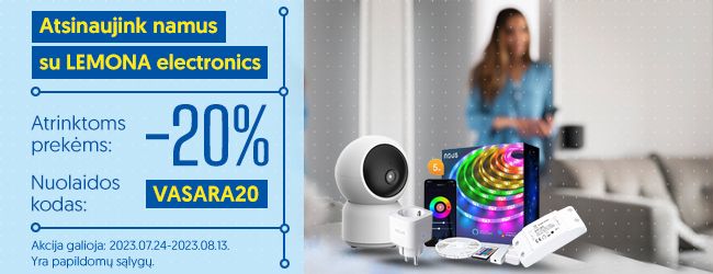 Nuolaida galioja perkant fizinėse LEMONA electronics parduotuvėse bei mūsų elektroninėje parduotuvėje lemona.lt, tik nepamiršk nuolaidos kodo VASARA20. Peržiūrėti visas prekes galite čia: Atsinaujink namus su LEMONA electronics!
