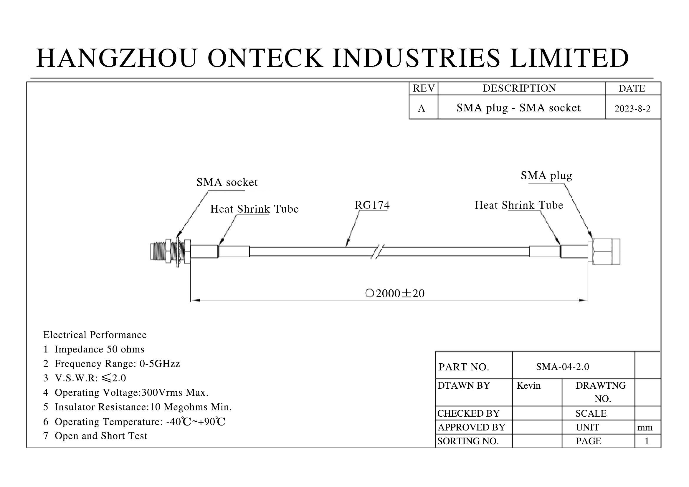 Cable; 2m; SMA male,SMA female; black; straight; 50Ω ONTECK