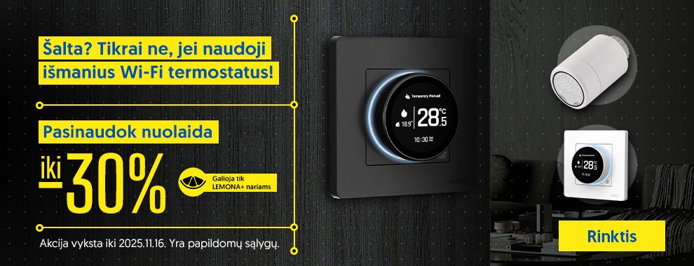 Atrask išmanius Wi-Fi termostatus, kurie leis džiaugtis žiema šiltuose, tavo poreikiams paklūstančiuose namuose ir netgi – sumažinti sąskaitas už šildymą. Atrask išmanių TUYA Wi-Fi termostatų asortimentą ypač patraukliomis kainomis su -30 % nuolaida, pasiūlymas galioja iki 11.16.