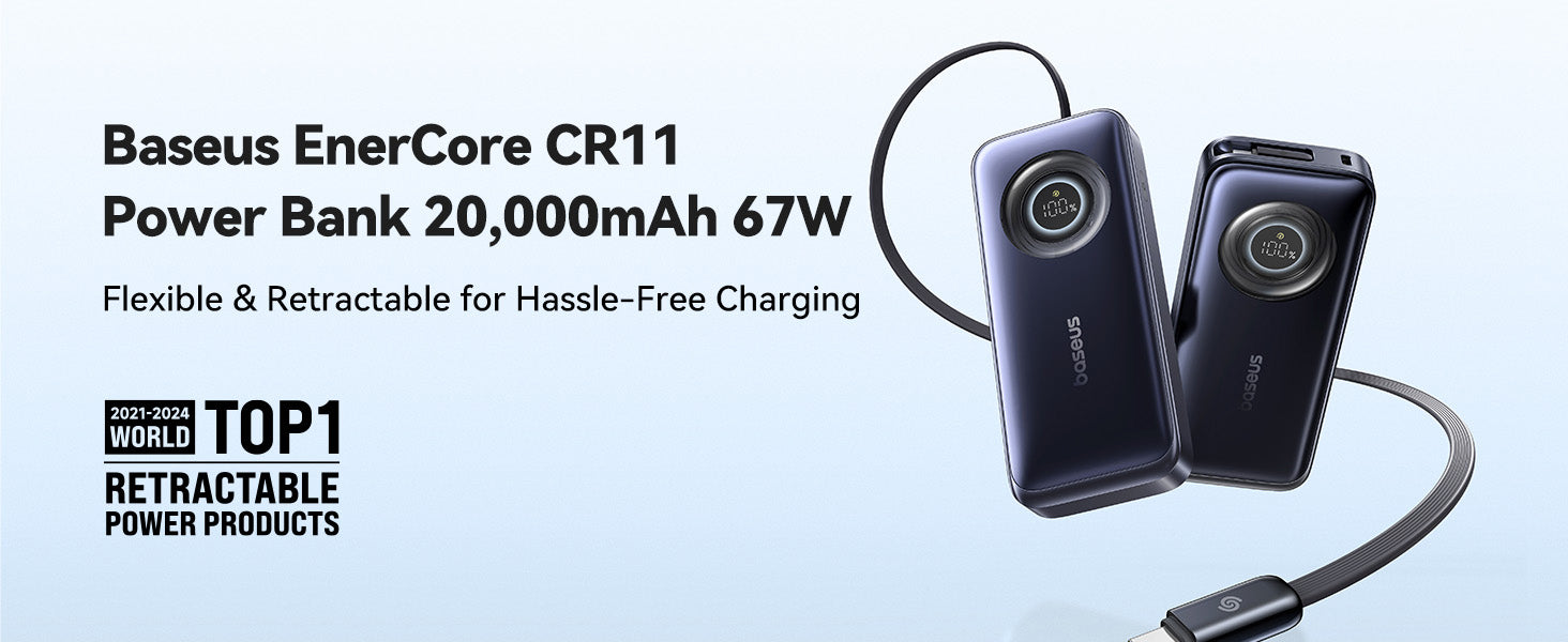 „Baseus EnerCore CR11“ išorinė baterija su ištraukiamu kabeliu, 20000 mAh, 67 W – tai jūsų 67 W greito įkrovimo kompanionas! Įkraukite „MacBook Air“ iki 50 % per 30 minučių, mėgaukitės 20 000 mAh galia, kurios pakaks 3–4 kartams įkrauti telefoną, ir išvengsite netvarkos su 0,7 m ištraukiamu kabeliu. Saugi, išmanioji ir kelionėms pritaikyta – įsigykite ją dabar!