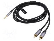 Cable; Jack 3.5mm 3pin plug,RCA plug x2; 8m; black; textile VENTION